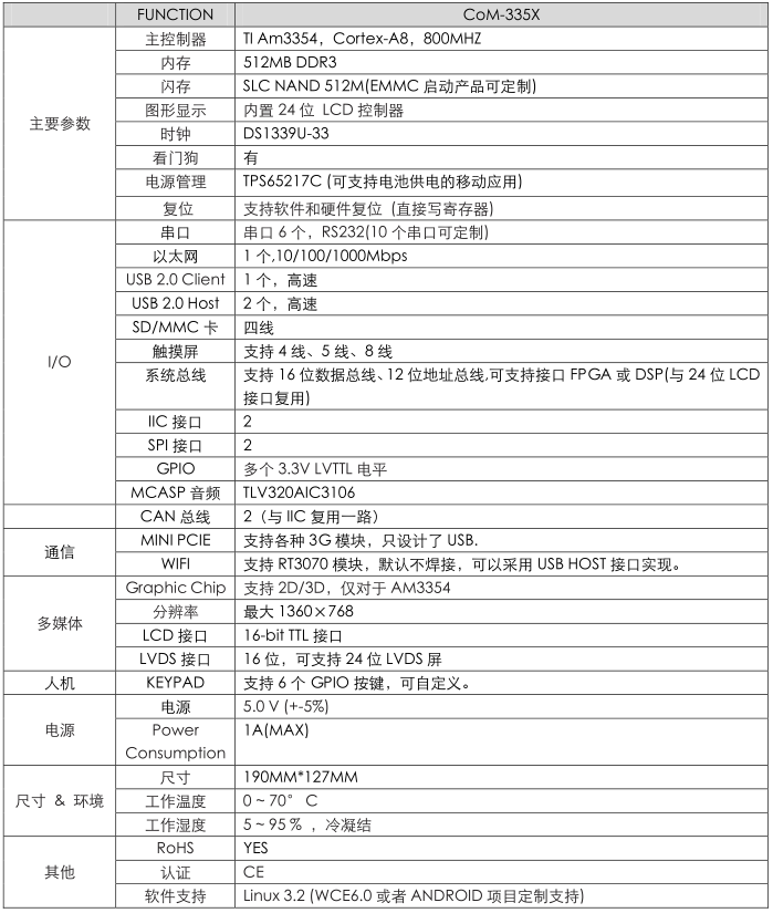 1.處理器采用系列化,從高端過渡到低端,滿足不同行業客戶的各種功能需求,達到性價比最優的微妙平衡。分別有AM3359/AM3358/AM3357/AM3356/AM3354等多款配置參數各不相同的處理