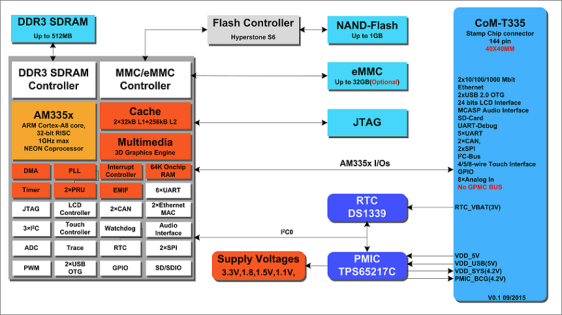 8. 串口包括:2 個控制器局域網端口 (CAN)6 個 UART,2 個McASPI,2 個 McSPI,3 個 I2C 端口