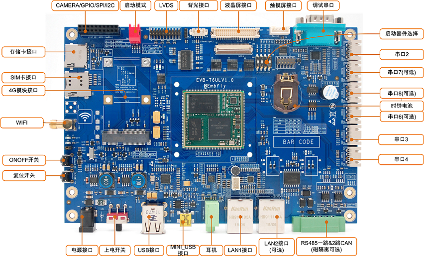 3. 支持SLC NAND(256M-1G BYTES)或EMMC(超大容量2G-32G BYTES)可啟動;