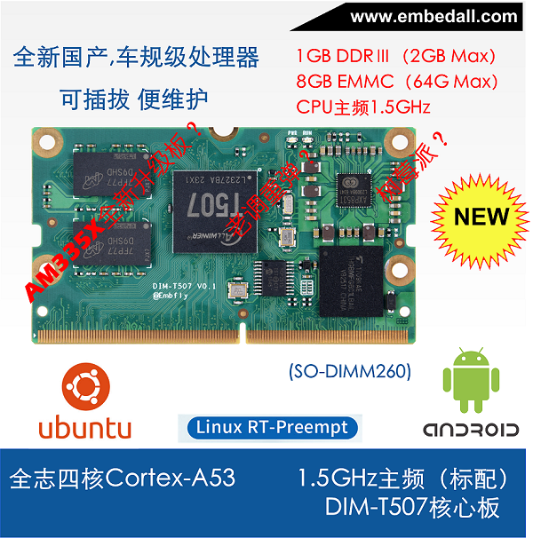 l 采用Allwinner公司Cortex-A53四核T507車規級處理器,運行最高速度為1.5GHZ;