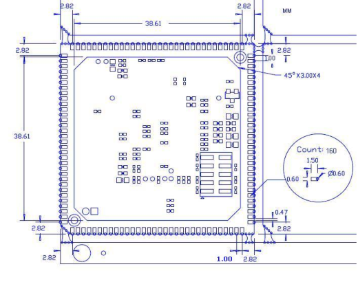 10.超小體積,郵票孔設計,160pins,尺寸為:45*45MM