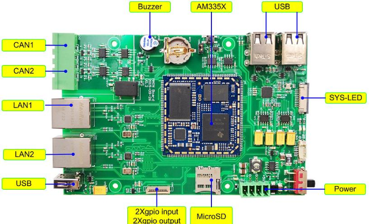 1.采用TI公司Cortex-A8 AM335X處理器,運行最高速度為1GHZ,標準配置AM3352/800MHZ